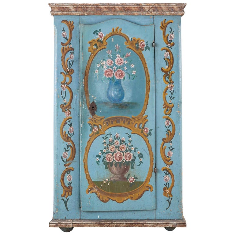 19th Century Venetian Painted Armoire Wardrobe Or Linen Press