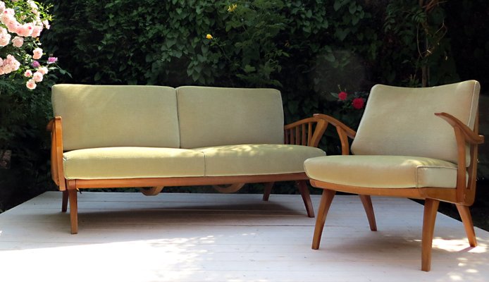 Vintage German Daybed Armchair In Lime Green 1950s