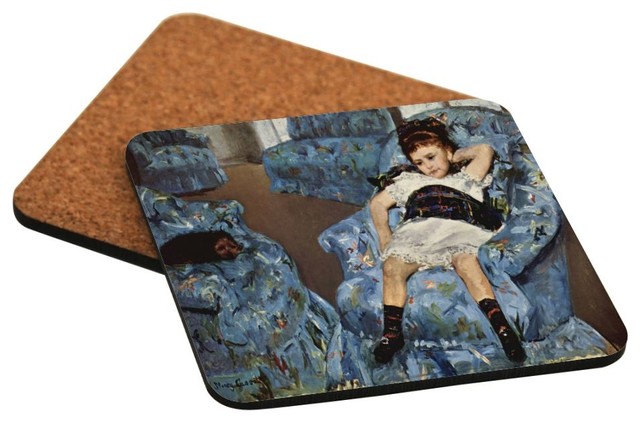 Mary Cassatt Art Small Girls In The Blue Armchair Hard Back Beer Coasters