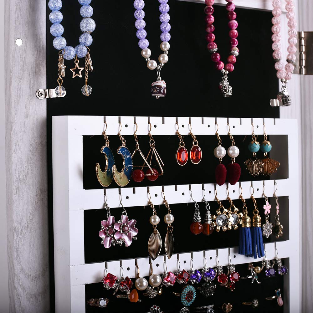 If you dont want to make a jewelry armoire from scratch you can make a jewelry cabinet by using a thrift store mirror. Joss main even offer pieces that mount over your closet or bedroom door providing you with a space efficient way to store your favorite necklaces bracelets and earrings. Soft interiors and various drawers compartments and hooks help keep your valuables safe from scratches tangles and unauthorized access.